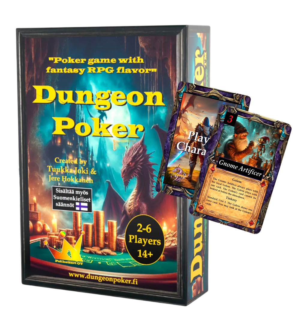 Sisältää molemmat tuotteet: Dungeon Poker pelin, sekä Collector´s Edition lisäkorttipakan.